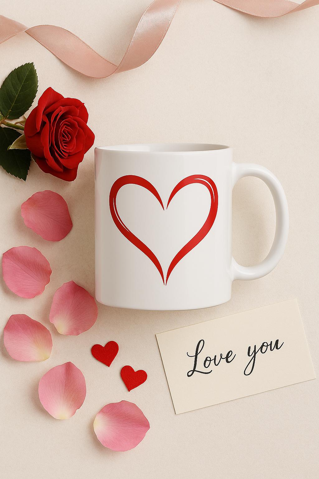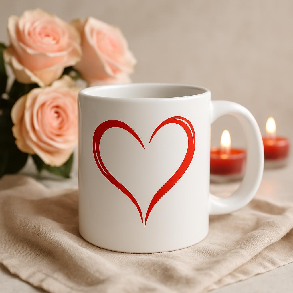 Red Heart Mug | Minimalist Valentine’s Gift, Cute Love Coffee Cup, Romantic Ceramic Mug, Simple Heart Design