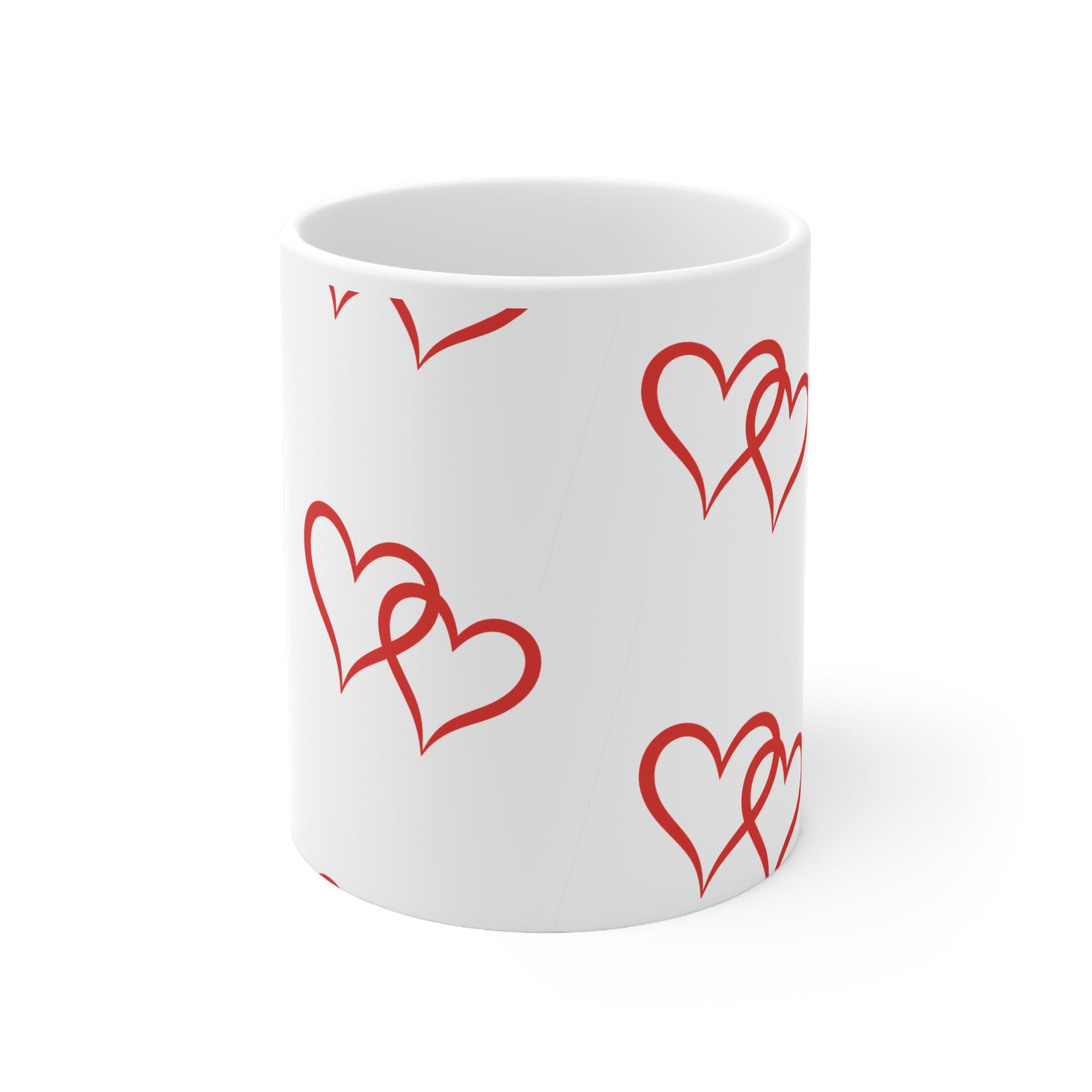 Red Heart Pattern Mug | Romantic Valentine’s Day Gift, Cute Love Coffee Cup, Anniversary Mug for Her or Him