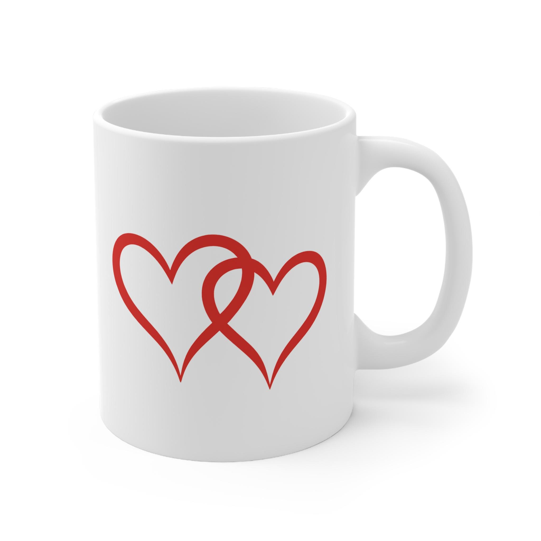 Double Heart Mug | Romantic Valentine’s Coffee Mug, Red Interlocking Hearts, Minimalist Love Cup, Cute Couple Gift