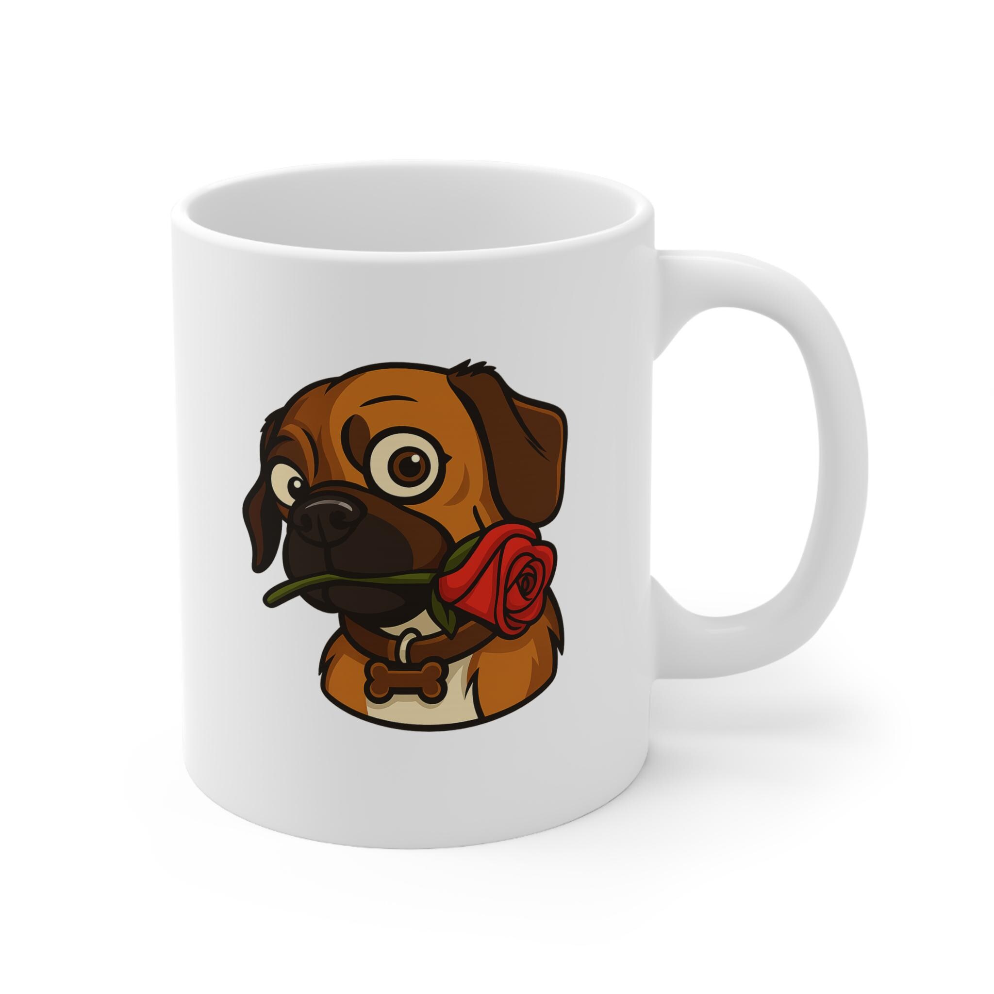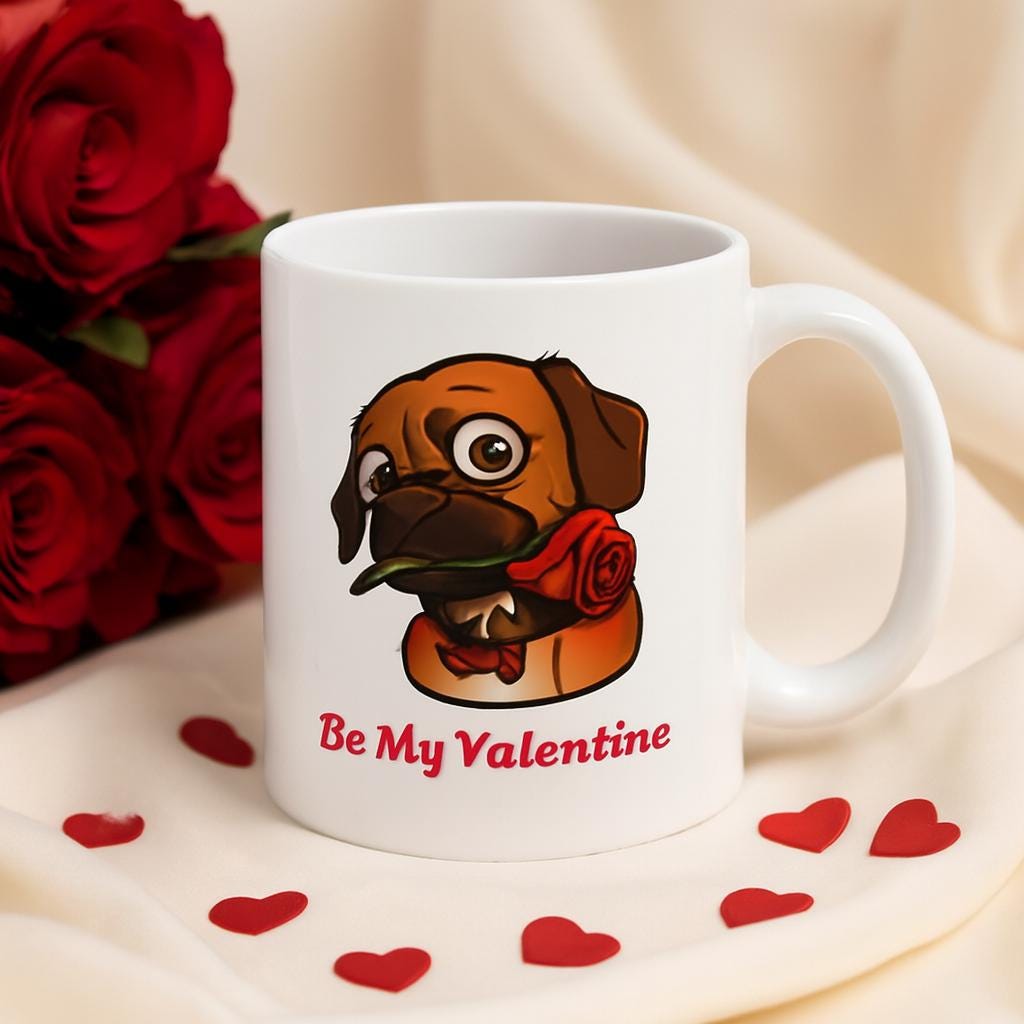 A cozy, romantic mug featuring Ruby the dog holding a red rose — perfect for Valentine’s gifting or sweet everyday moments. This boutique-style ceramic cup blends warmth, charm, and a touch of playful affection. Whether you're sipping morning coffee or wrapping up a heartfelt surprise, Ruby’s gentle gaze and rose-in-mouth design make this mug a lovable keepsake.