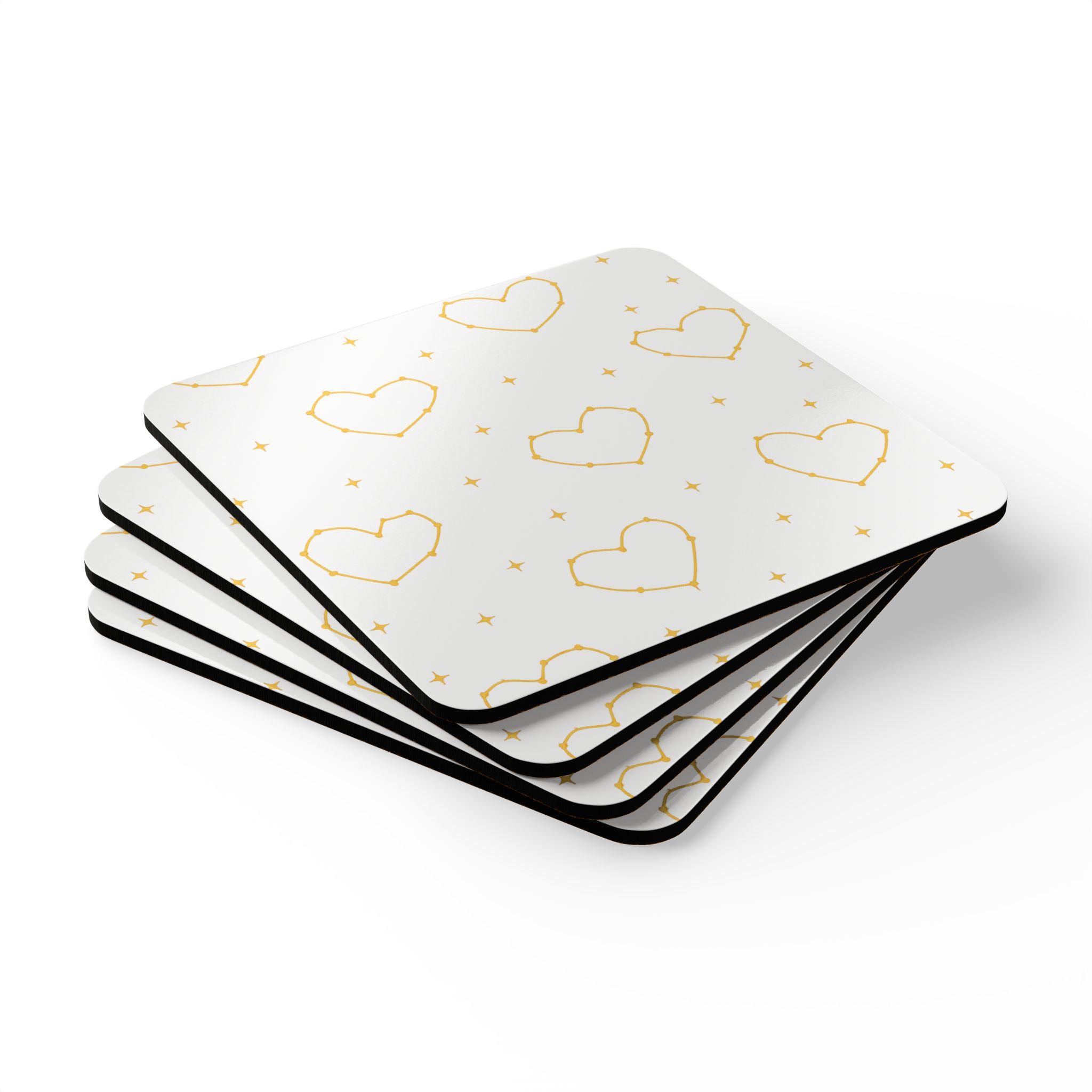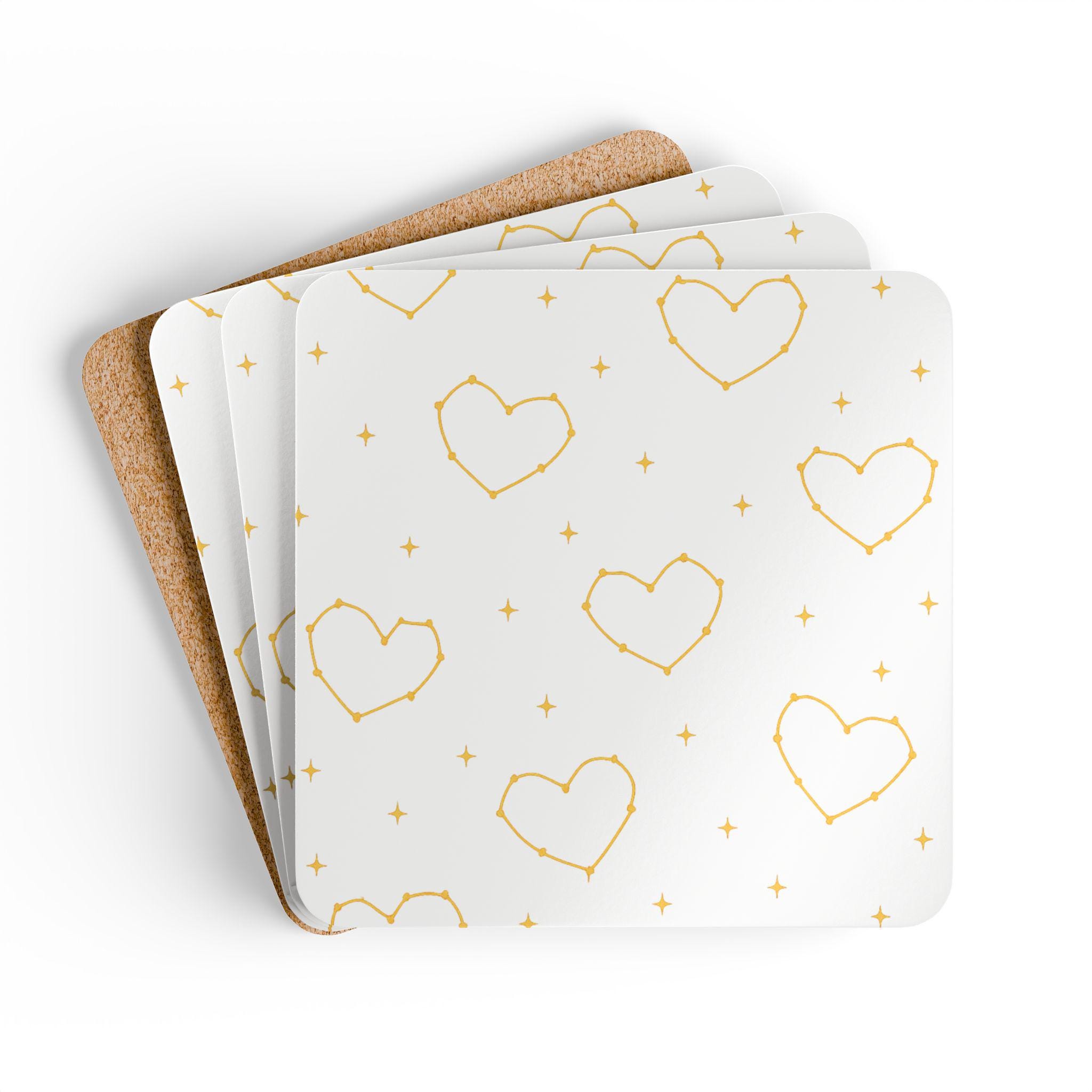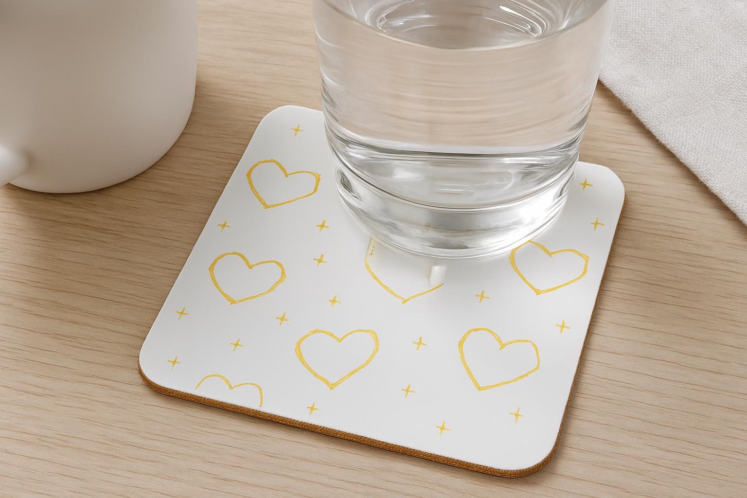 Yellow Heart Pattern Coaster, Cute Minimalist Drink Mat with Cork Backing, Kitchen Table Coasters, Cute Heart Design for Home & Gifts