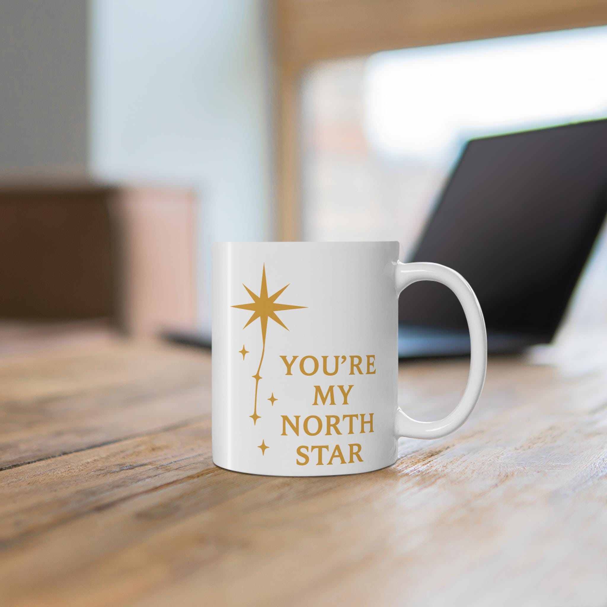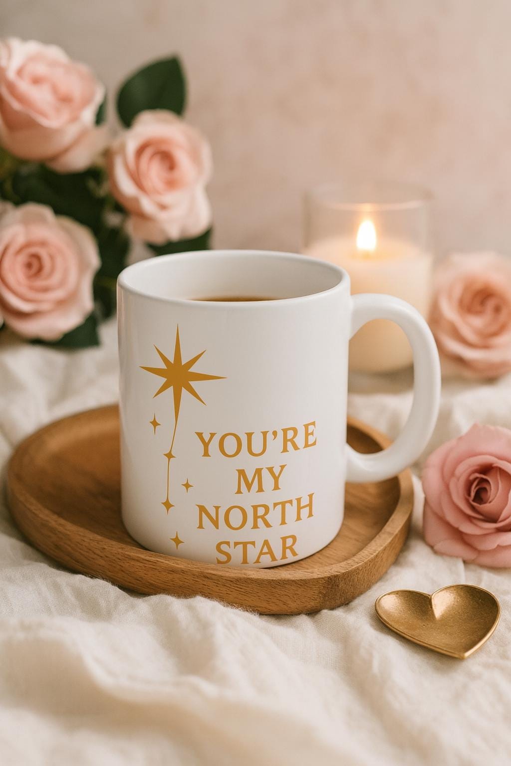 Celebrate your guiding light with this romantic “You’re My North Star” mug — a heartfelt gift for Valentine’s Day, anniversaries, or cozy mornings together. Featuring a golden celestial design and sentimental quote, this boutique-style ceramic mug adds warmth and charm to every sip.