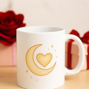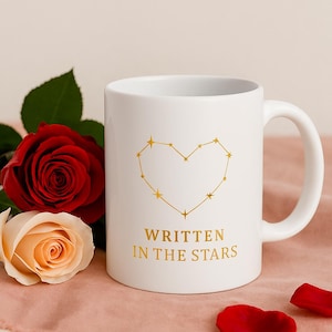 Celebrate love with a touch of the stars. This white ceramic mug features a delicate yellow constellation heart entwined with a blooming rose—symbolizing cosmic connection and romantic warmth. Perfect for Valentine’s Day, anniversaries, or everyday moments of self-love. Designed with boutique charm and minimalist elegance, it’s a heartfelt gift for starry-eyed dreamers and rose lovers alike.