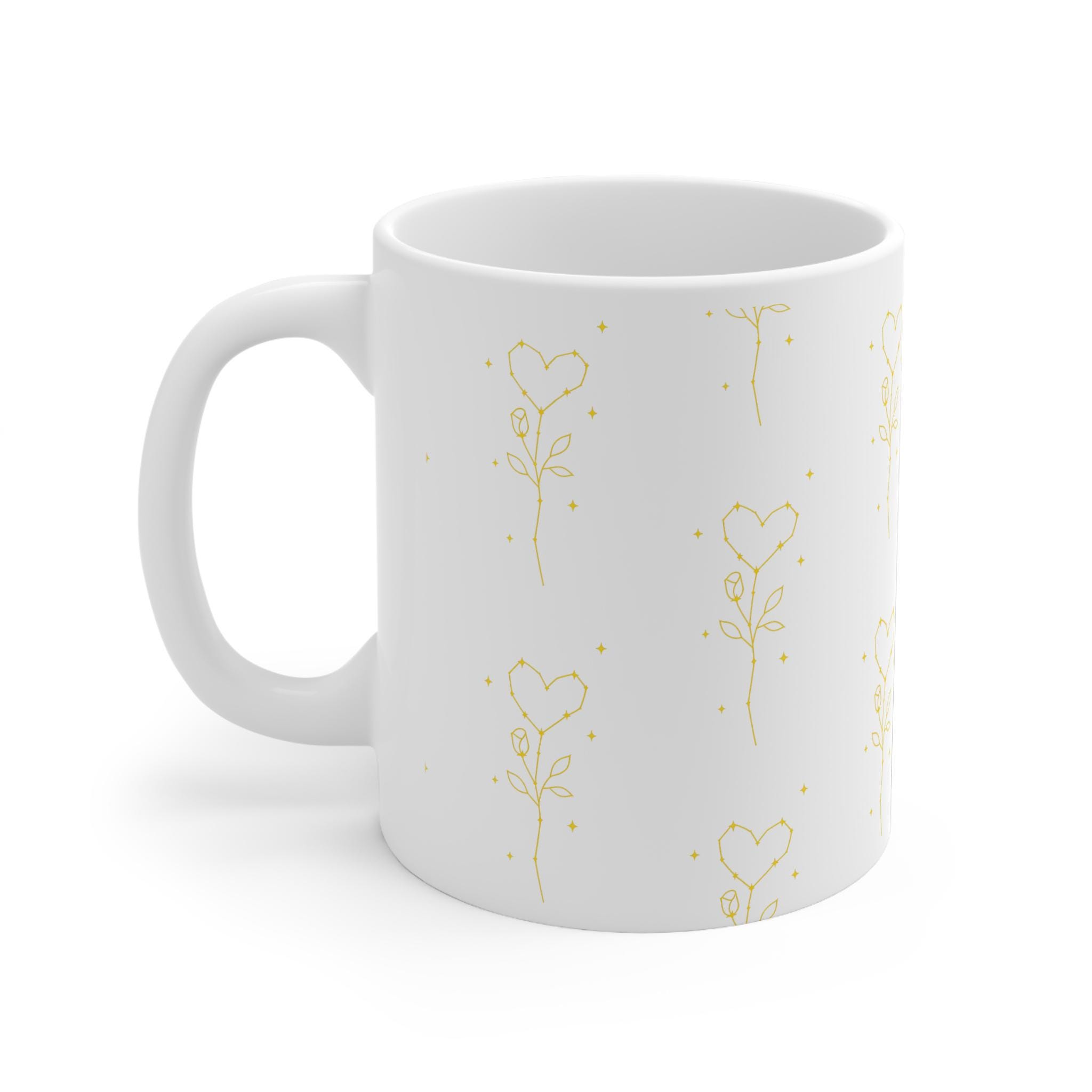 Add a touch of whimsy to your morning ritual with this boutique ceramic mug, featuring a delicate yellow floral pattern with heart-shaped blooms and scattered dots. Perfect for Valentine’s gifting, spring refreshes, or everyday charm, this mug blends romantic warmth with playful elegance. Ideal for tea lovers, coffee fans, and anyone who adores soft floral aesthetics. Designed to brighten your day and your shelf.