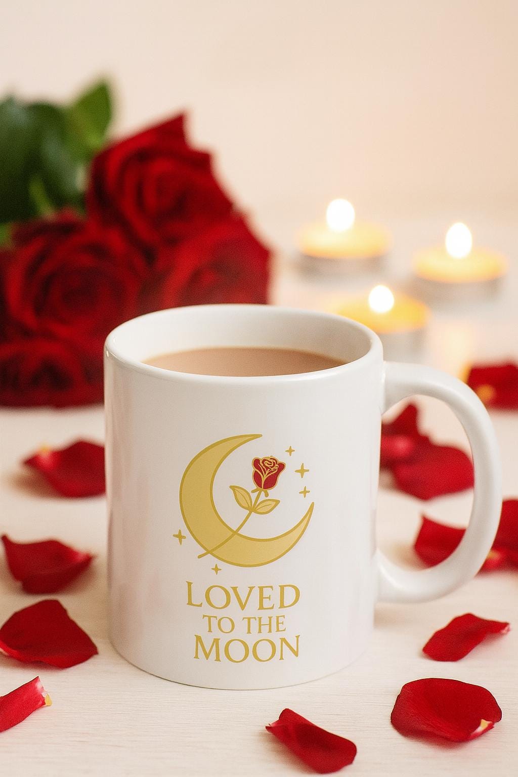 Celebrate love that’s truly out of this world with our Romantic Moon Rose Mug. Featuring a golden crescent moon cradling a blooming red rose, surrounded by delicate stars, this celestial design evokes warmth, wonder, and timeless affection. The phrase “LOVED TO THE MOON” adds a heartfelt touch, making it the perfect gift for Valentine’s Day, anniversaries, or cozy nights in.