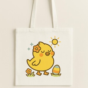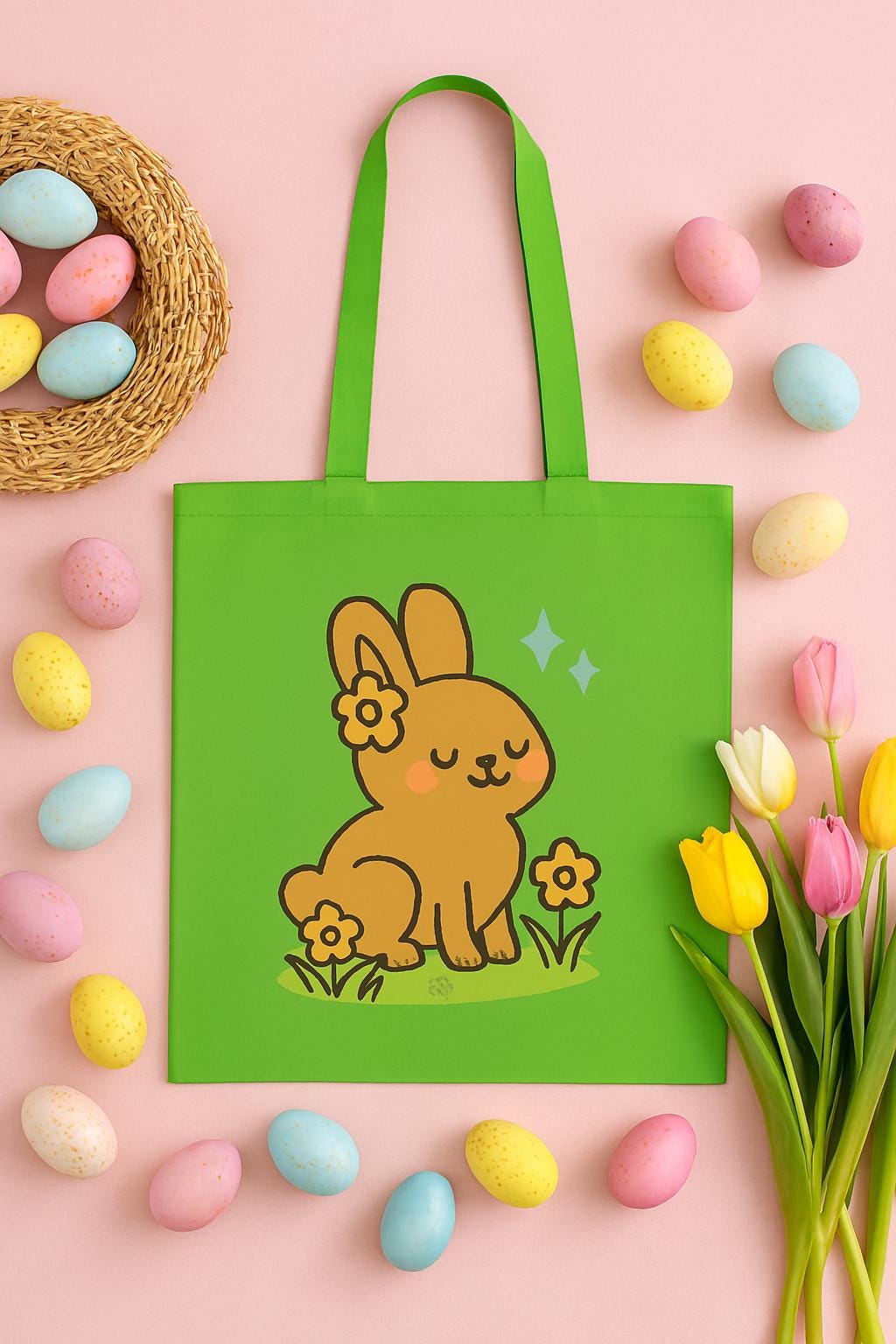 Cute Bunny Tote Bag – Kawaii Spring Rabbit Design, Floral Pastel Tote, Easter Gift Idea