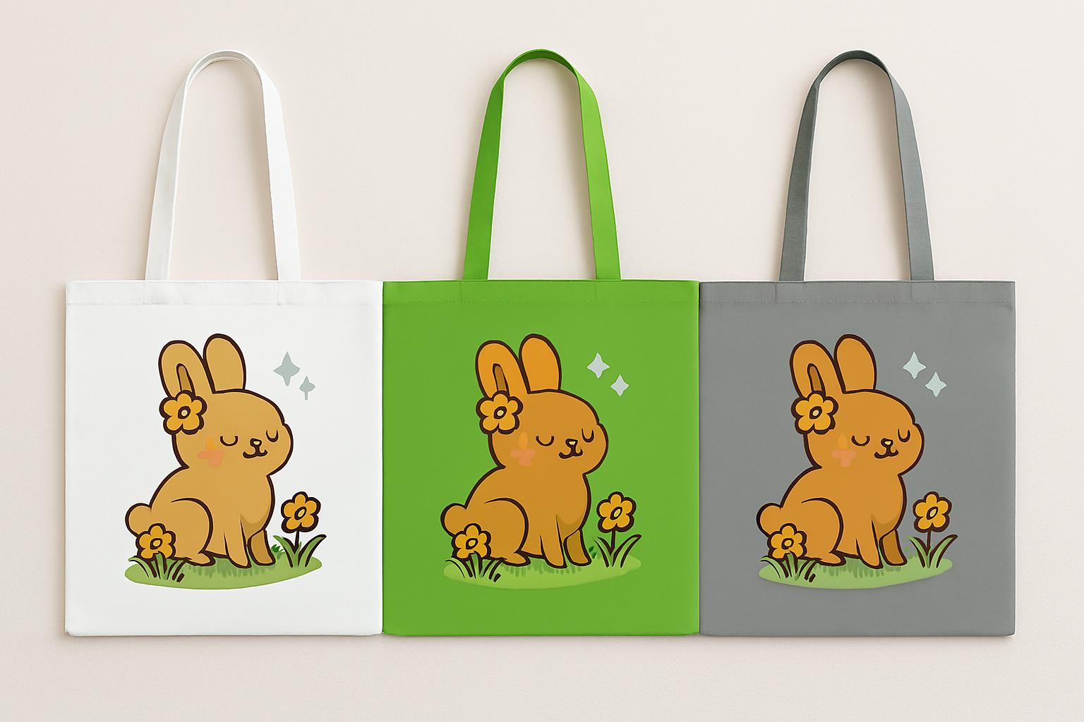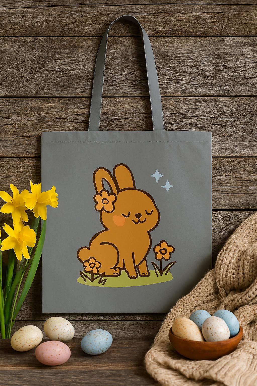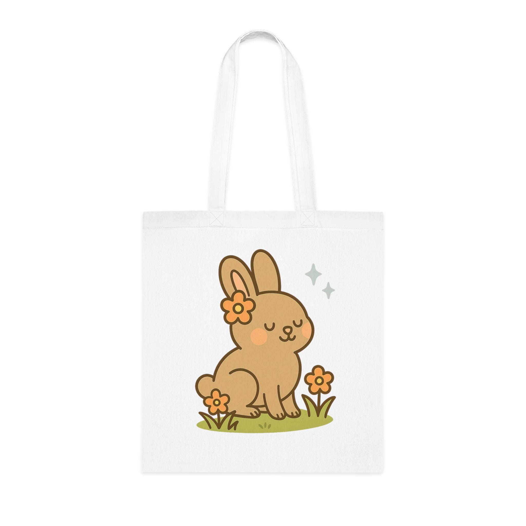 Bring a touch of springtime charm to your everyday with this Cute Bunny Tote Bag. This tote ships free, making it a perfect ready-to-gift spring surprise. Featuring a kawaii-style rabbit surrounded by orange flowers and sparkles, this pastel tote is perfect for Easter gifting, seasonal errands, or year-round cuteness. Available in white, green, and grey, each colour complements the soft floral design and adds boutique flair to your outfit.