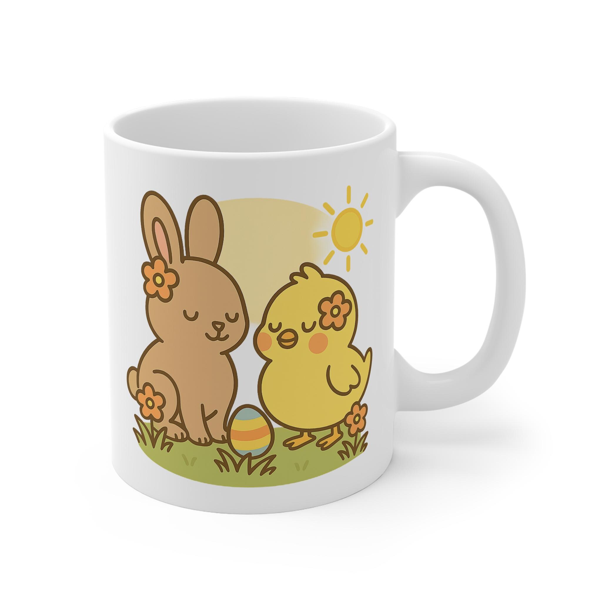 Cute Easter Bunny & Chick Mug • Spring Coffee Cup • Pastel Floral Egg Design • Sweet Easter Gift for Her • Springtime Tea Mug