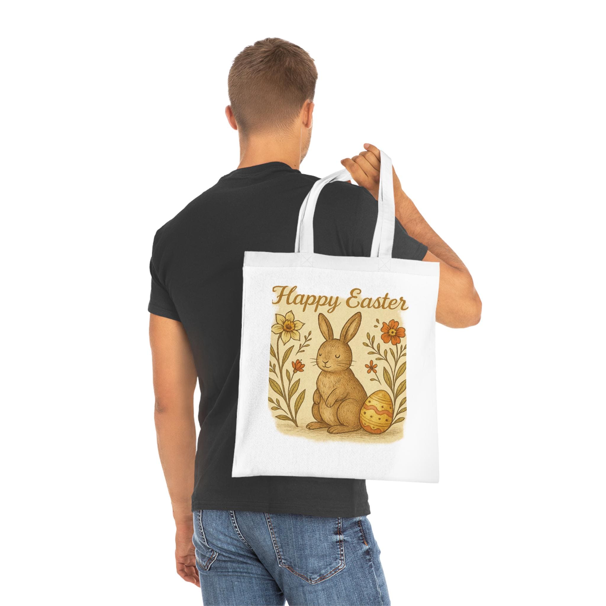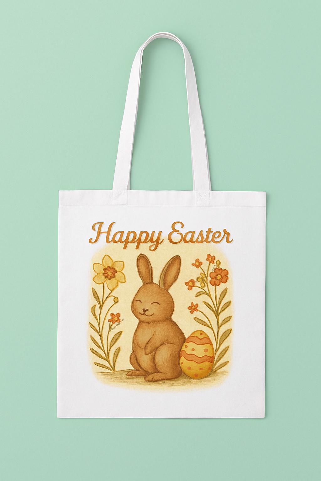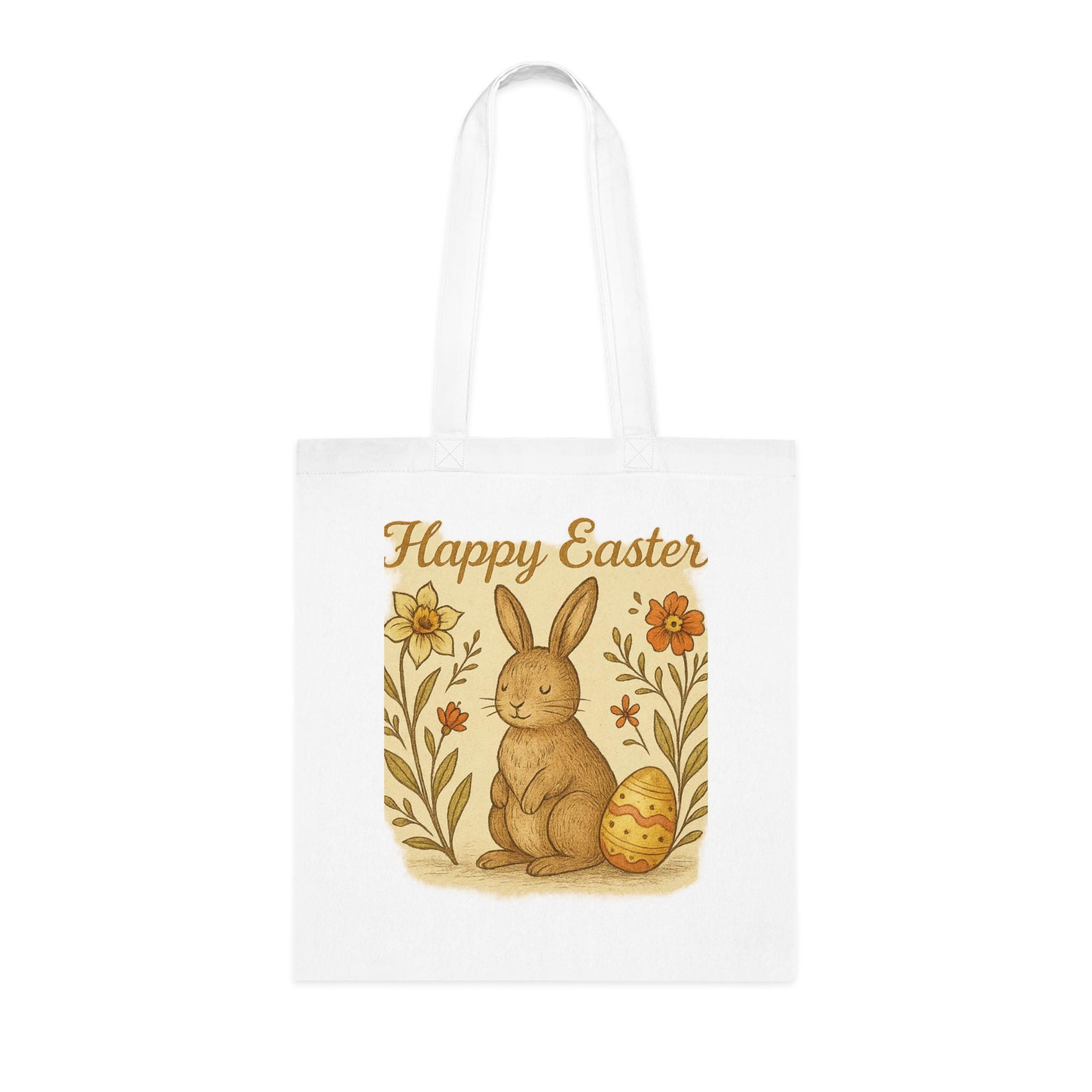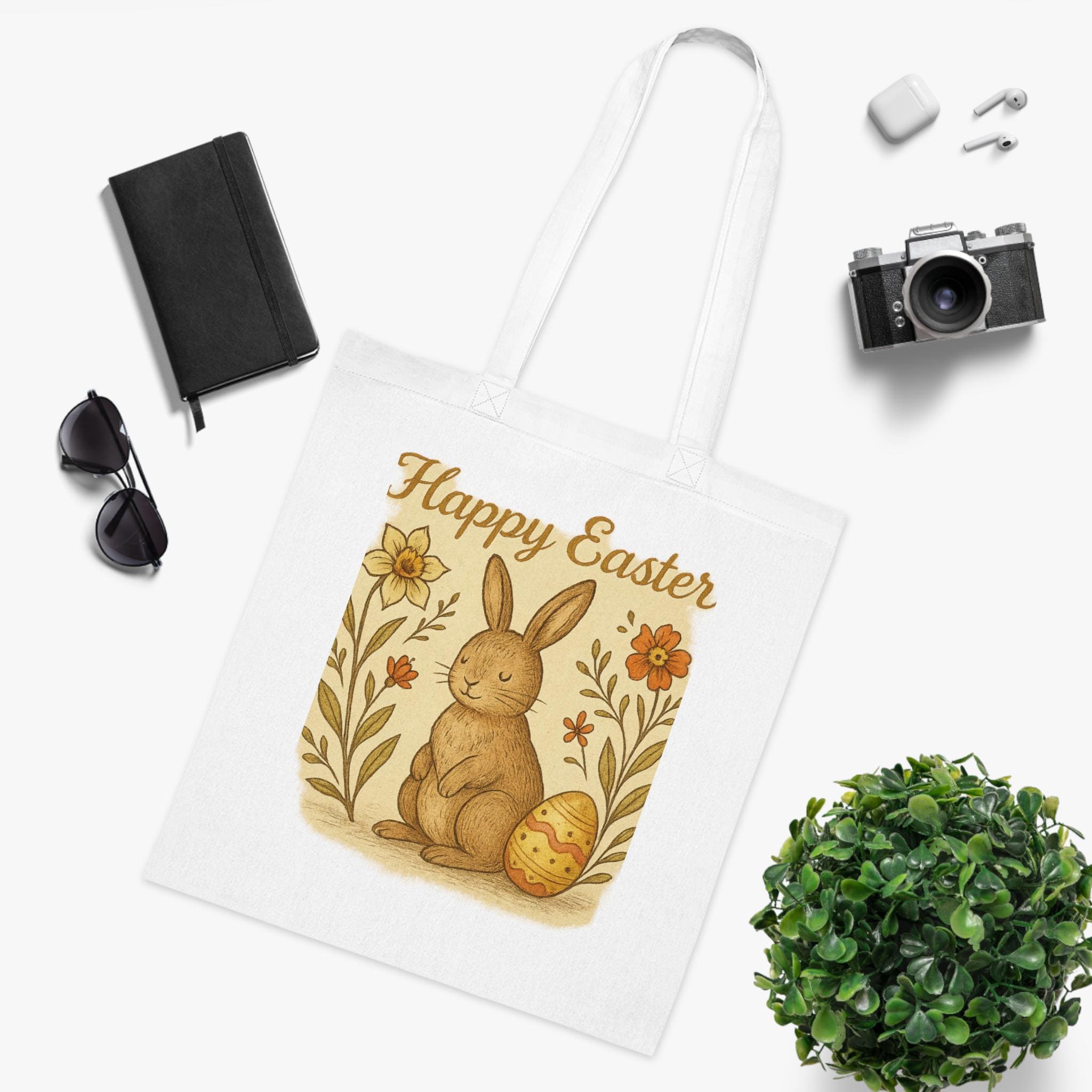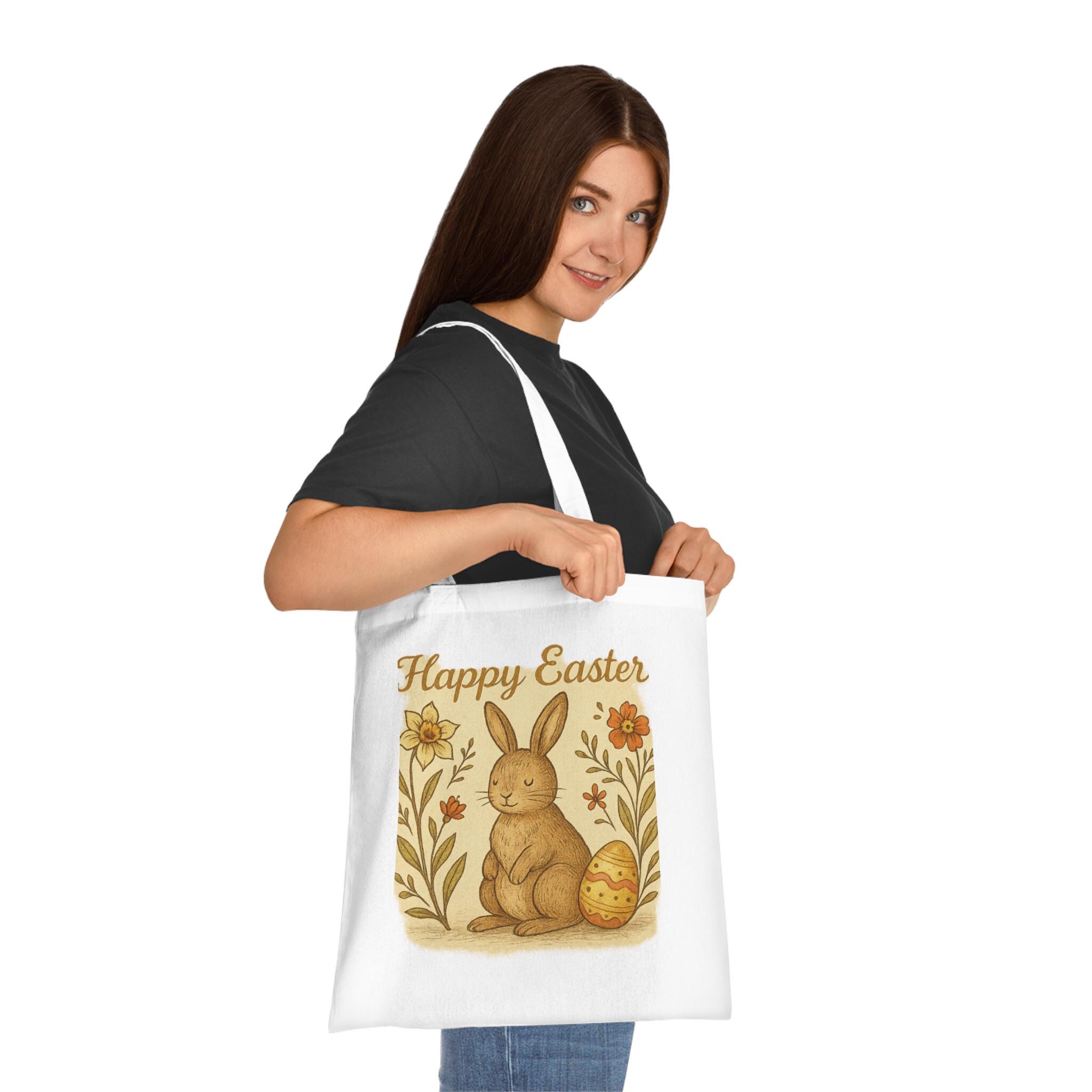 Happy Easter Bunny Tote Bag – Vintage Spring Floral Egg Design – Cute Bunny Reusable Shopping Bag – Eco Friendly Spring Tote