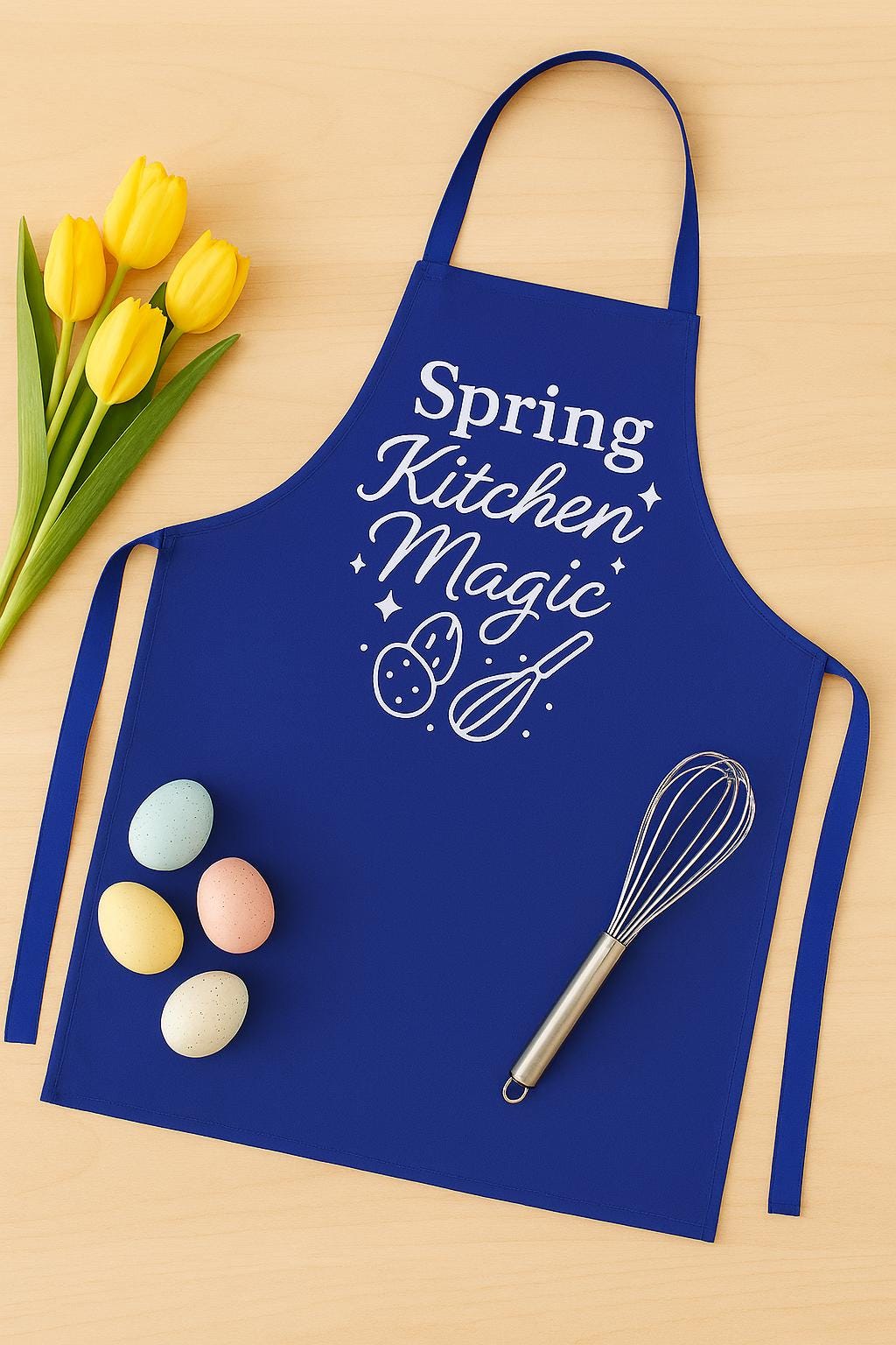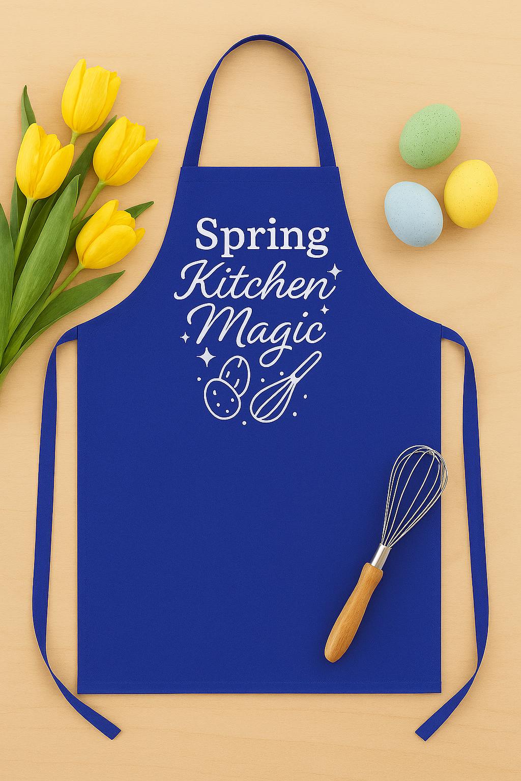 Royal Blue Spring Kitchen Magic Apron – Easter Baking Apron, Whisk & Sparkle Design
