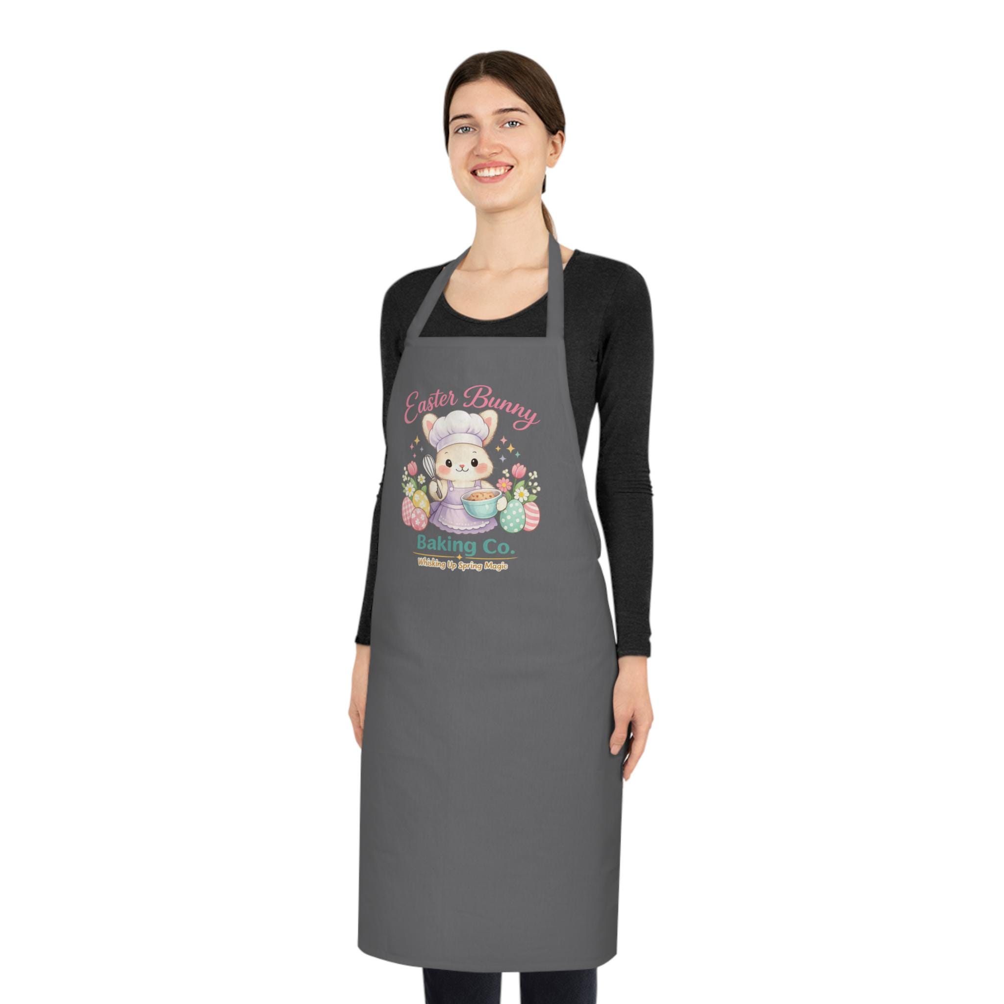 Easter Bunny Baking Co Apron • Grey Easter Apron for Bakers • Cute Bunny Chef Apron • Spring Baking Gift • Pastel Easter Kitchen Decor
